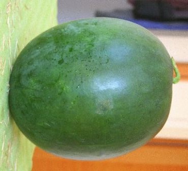 Di colore verde striato e polpa rossa. Pesa circa 2 kg. Di basso valore calorico.